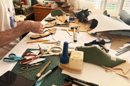 Harp Pattern Sketch Matryoshka Details Melting Sneakers Matryoshka Assembly Harps Assembly Stitching Bird Inspired Shoe Sketches Con-Fusion Upper Stitching Brush stilettos Pencil Stiletto Sketch Studio Paparazzi “Shark” Upper Microphone Heels “Miao” Upper “Miao” heel carving Cheerleader upper assembly “Matryoshka” insole Lasting Antarctica Series “Blow” structure Making “Blond Ambition” Final Touch! Chopsticks Stilettoes Chewing Gum sneaker Chewing Gum Heels Making of Face It Handbag Notebook Upper Stitching “Banana” Uppers Cheerleader Upper stitching Baseball inspired Shoe Sketches Making of Lock Down Handbag Face Mask inspired Sling-Back Sketch Studio Press Pencil Stilettoes